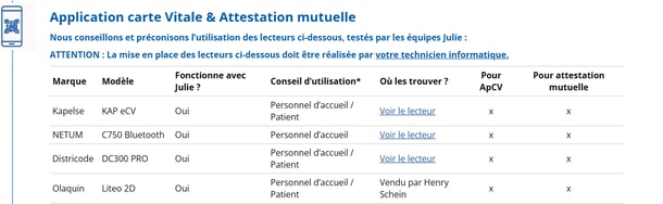 Les deux modèles de lecteurs préconisés font-ils la lecture de l'application carte Vitale, de l'attestation mutuelle et de l'ordonnance numérique ?